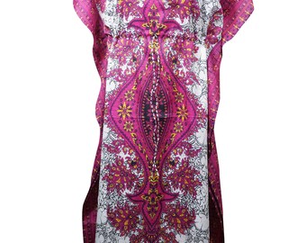 (15% off)Womens Kaftan Dress, Pink Butterfly Jewel Printed Kaftan, Summer Bohemian Lounger Caftan One Size M-3X