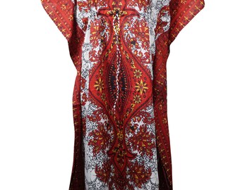 (15% off)Womens Maxi Caftan Dress, Red Dashiki Kaftan, Summer Vocation Caftan, boho Lounger Dresses 3XL