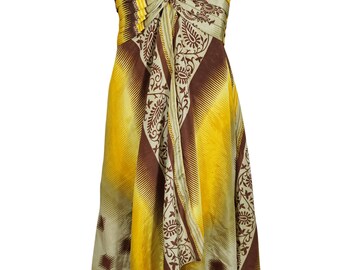 Womens Tank Midi Dress, Spaghetti Strap Dress Bohemian Dress, Handmade Yellow Floral Printed Summer Fashion S/M