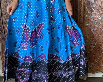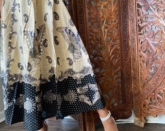 $28.75Womens Maxi Skirt, Black Blue Printed Flare Beaded Bohemian Summer Fall Indi Skirts M