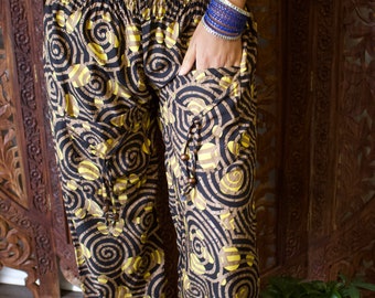 $19.77Womens Yoga Harem Pant, Bohemian Pant Bohemian hippy Cotton Pajamas Beige Black Printed Trousers S/M