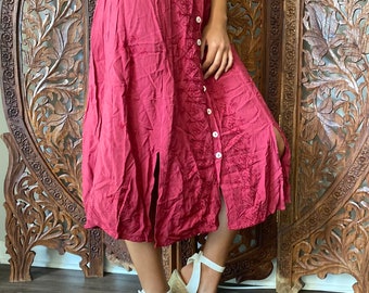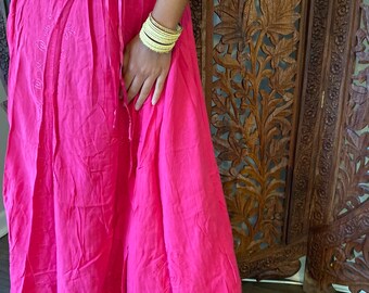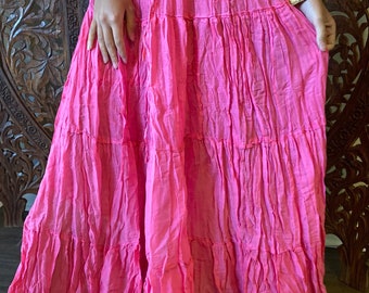 $27.78Womens Maxi Long Skirt, Solid Pink Bohemian Summer Skirt Tiered Cotton Summer Gypsy Skirts M