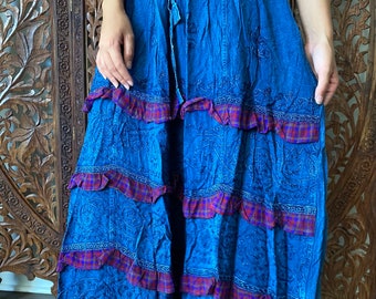 $23.67Women's Maxi Skirts, Blue Bohemian Tiered Skirts, Fall Summer Beach Casual Boho Long Skirt M