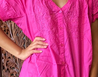 $27.87Womens Boho Blouse, Pink Embroidered Handmade Loose Bohemian Summer Cotton Tops M