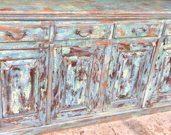 $1,999.00 FREE shippingRustic Turquoise Sideboard Hand Carved Chest Natural Wood Distressed Console Buffet Table Farmhouse Storage Cabinet
