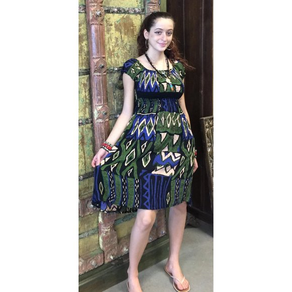 Sleeveless Dress Ethnic Print Gypsy Midi Dresses Resort M