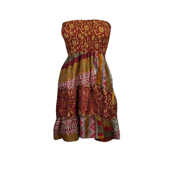 Maxi Skirt, Multicolor Strapless Dress, Floral Printed Recycled S/M