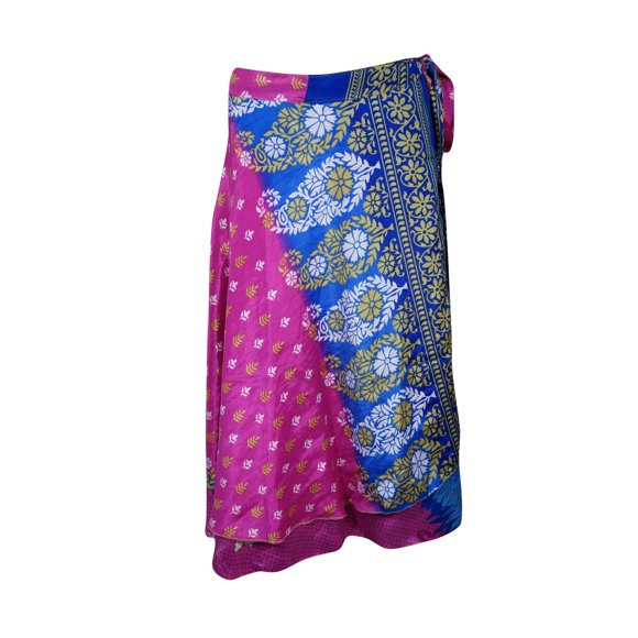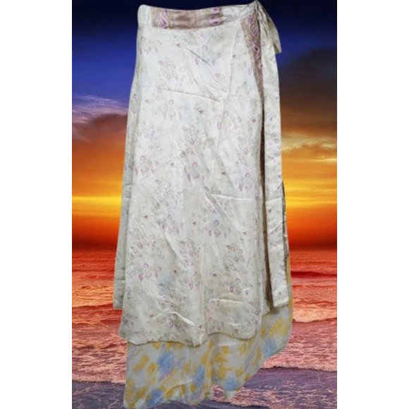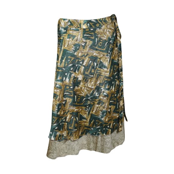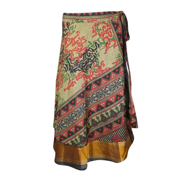 Short Wrap Skirt, Comfy Sari Silk Two Layer size