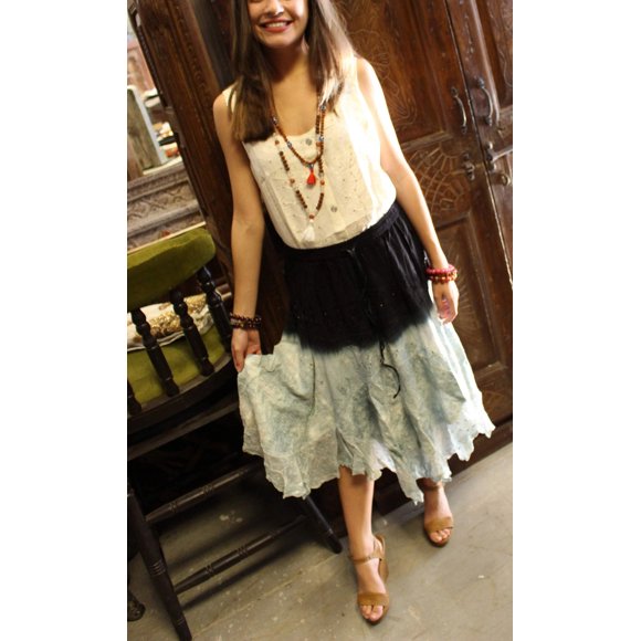 Boho Tulip Garden Skirt Silk Double Layered Handmade Skirt One Size