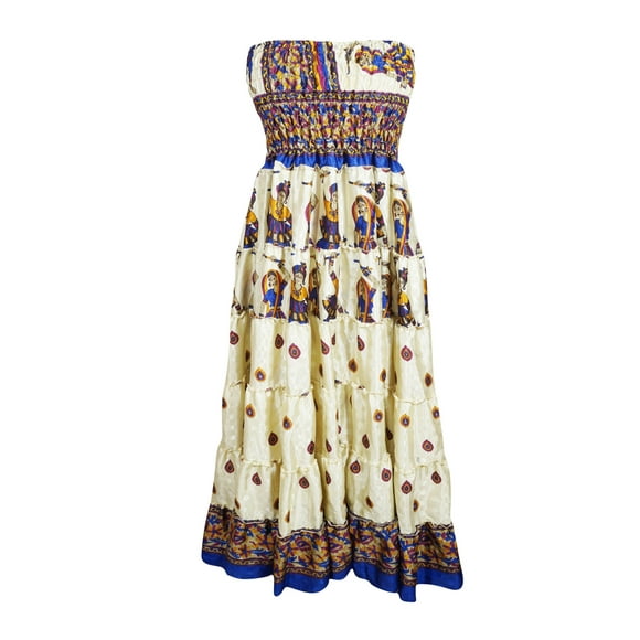 Maxi Skirt, Beige BLUE Indi Boho Gypsy Strapless S/M