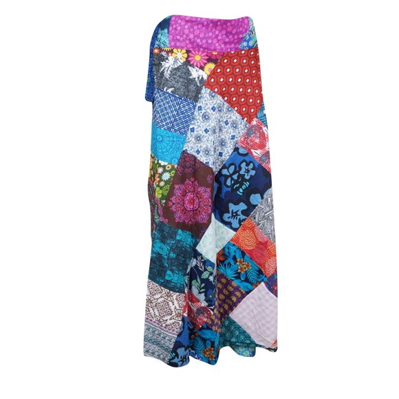 Womens Wrap Skirt, Patchwork, Blue Printed Cotton Maxi Wrap Around Skirt One size